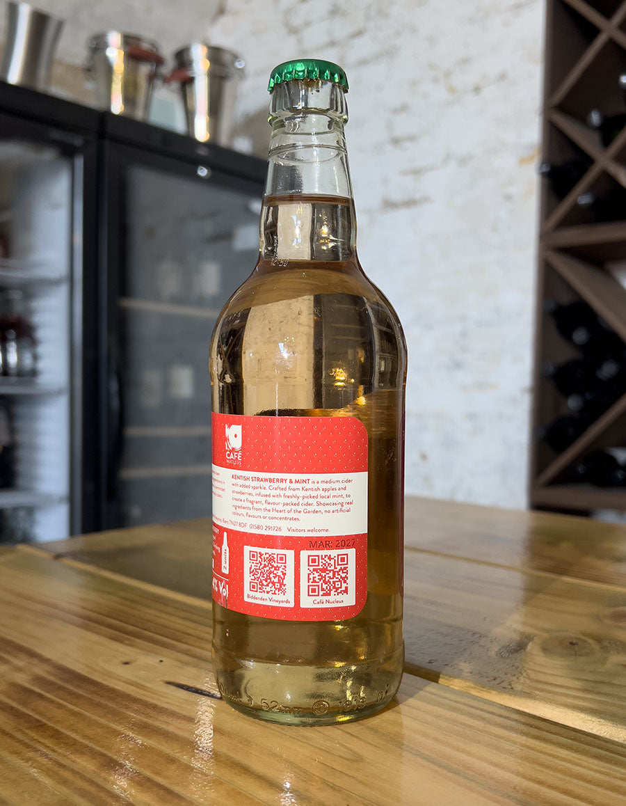 KENTISH STRAWBERRY & MINT is a medium cider with added sparkle. Crafted from Kentish apples and strawberries, infused with freshly-picked local mint, to create a fragrant, flavour-packed cider. Showcasing real ingredients from the Heart of the Garden, no artificial